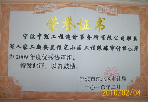 任福成協(xié)審組榮獲江北區(qū)審計局“2009年度先進(jìn)協(xié)審組”稱號-中冠榮譽(yù)-中冠咨詢-中冠工程管理咨詢有限公司