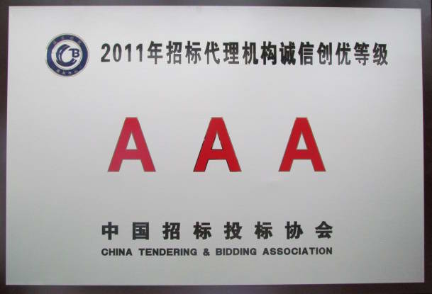 2011年招標(biāo)代理機構(gòu)誠信創(chuàng)優(yōu)AAA單位