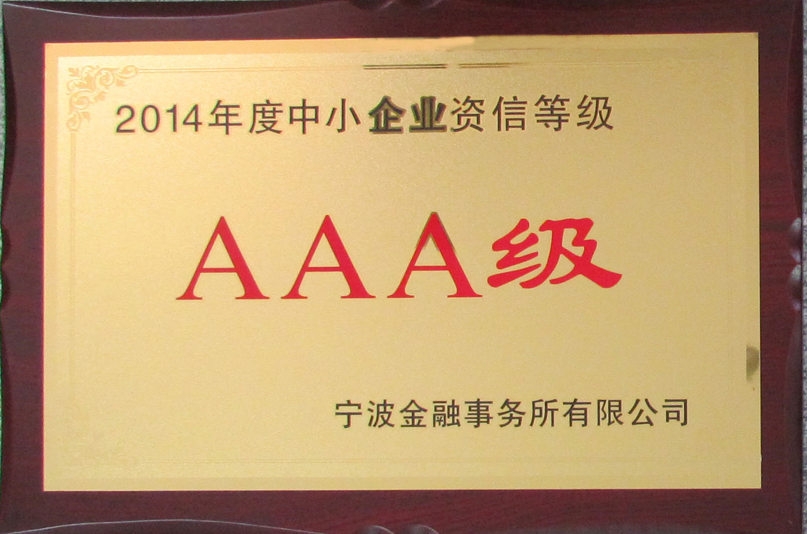 2014年度AAA級中小企業(yè)資信等級