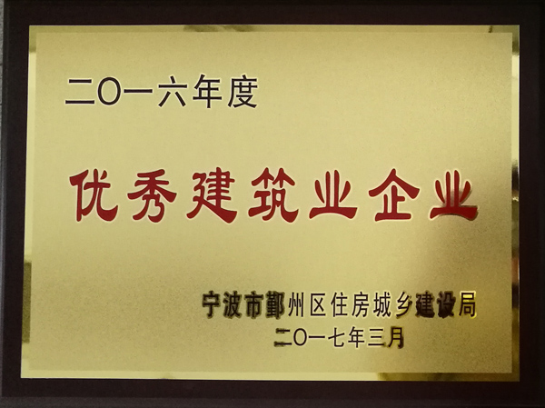 “2016年度寧波市鄞州區(qū)優(yōu)秀建筑業(yè)企業(yè)”榮譽(yù)
