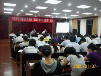 為配合“2008清單計(jì)價(jià)規(guī)范”于2009年9月1日開(kāi)始正式在寧波啟用。我司于2009年8月27日晚,在百丈街道五樓會(huì)議室,舉辦“2008清單計(jì)價(jià)規(guī)范”專項(xiàng)培訓(xùn)學(xué)習(xí)。本次培訓(xùn)學(xué)習(xí)對(duì)象為公司全體專業(yè)技術(shù)人員。