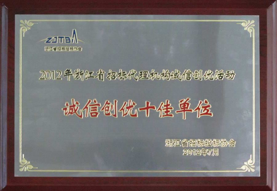 2012年7月20日下午,浙江省招標(biāo)投標(biāo)協(xié)會(huì)召開了第一屆二次理事會(huì)暨2012年浙江省招標(biāo)代理機(jī)構(gòu)誠(chéng)信創(chuàng)優(yōu)活動(dòng)表彰大會(huì),對(duì)全省范圍內(nèi)的31家誠(chéng)信創(chuàng)優(yōu)優(yōu)勝單位進(jìn)行了表彰。本次評(píng)選活動(dòng)是浙江招標(biāo)投標(biāo)協(xié)會(huì)第一次舉辦的招標(biāo)代理機(jī)構(gòu)誠(chéng)信創(chuàng)優(yōu)活動(dòng),根據(jù)《浙江省招標(biāo)代理機(jī)構(gòu)誠(chéng)信創(chuàng)優(yōu)活動(dòng)實(shí)施辦法》,經(jīng)浙江省招標(biāo)投標(biāo)協(xié)會(huì)誠(chéng)信創(chuàng)優(yōu)工作領(lǐng)導(dǎo)小組評(píng)審,共評(píng)出了10家“誠(chéng)信創(chuàng)優(yōu)十佳單位”、8家“誠(chéng)信創(chuàng)優(yōu)先進(jìn)單位”、13家“誠(chéng)信創(chuàng)優(yōu)合格單位”。中冠公司榮獲“誠(chéng)信創(chuàng)優(yōu)十佳單位”,公司執(zhí)行董事聶偉軍到會(huì)參加,并在會(huì)上接受了協(xié)會(huì)頒發(fā)的證書。 公司辦公室 二0一二年 七 月二十三日