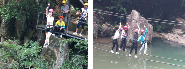 2017年7月1日清晨,中冠公司代理部一行20多人來到四明山柿林村,開始了為期一天的部門拓展活動(dòng)。目的想通過這項(xiàng)活動(dòng)凝聚團(tuán)隊(duì)?wèi)?zhàn)斗力和培養(yǎng)團(tuán)隊(duì)的合作精神。車行1小時(shí)左右到達(dá)目的地,大家從森林穿越開始,吊鋼索走鋼絲,從單兵作戰(zhàn)到互相扶持共渡溪水。 招標(biāo)代理部