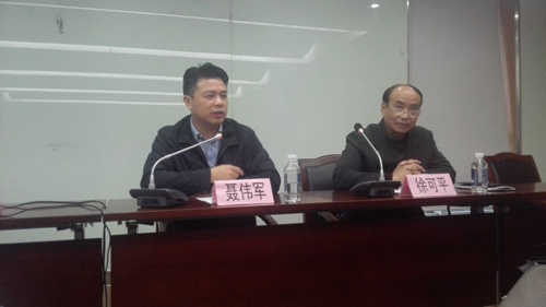 (圖為聶偉軍同志講話  徐可平同志主持會議)