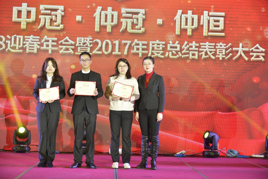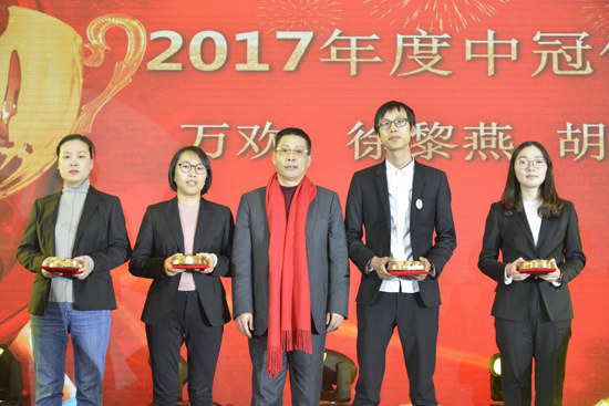 表彰大會,首先進行了中冠2017年度員工表彰,公司常務(wù)副總經(jīng)理陳勇、副總經(jīng)理張曉坤、黨總支副書記徐可平、總工程師周巍、副總經(jīng)理謝慧敏、副總經(jīng)理任福成、總經(jīng)理助理楊祖迪等有關(guān)領(lǐng)導(dǎo)與嘉賓向榮獲2017年度中冠優(yōu)秀主管、中冠優(yōu)秀導(dǎo)師、中冠優(yōu)秀員工、中冠優(yōu)秀駐場員工、中冠最佳新人、中冠最佳市場開拓個人以及2017年各類考試通過人員、各類優(yōu)秀集體、優(yōu)秀個人、先進個人等給予表彰頒獎,并號召全公司同事向他們學(xué)習(xí)。主持人并對獲獎人員代表進行了現(xiàn)場采訪,獲獎代表均表示將在新的一年里再接再勵、努力工作,為中冠公司的發(fā)展貢獻自己的力量。