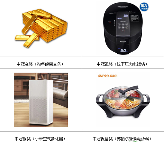 穿插在滿堂中冠·酒會中還有激動人心的抽獎活動,公司設(shè)置了各類豐富的獎品,大家一邊吃著豐盛的晚宴,一邊不時接受幸運的眷顧,層層的抽獎環(huán)節(jié)令人激動不已。整個酒會抽獎環(huán)節(jié)共設(shè)有中冠祝福獎(蘇泊爾鴛鴦電炒鍋)30名、中冠銅獎(小米空氣凈化器)12名、中冠銀獎(松下壓力電飯鍋)7名、中冠金獎(狗年健康金條)3名,更有所有人都怦然心動的中冠鉆石大獎(18888元現(xiàn)金)1名。