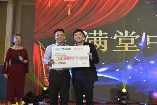 執(zhí)行董事聶偉軍先生親自上臺抽取中冠鉆石大獎,將滿堂中冠·酒會推向高潮。最后江北分公司的吳楓成為最后的大贏家,摘得中冠鉆石大獎。