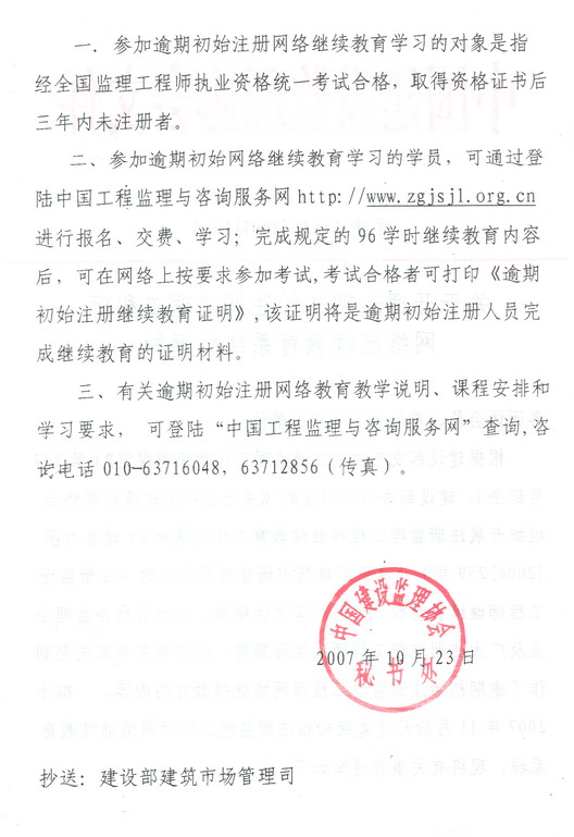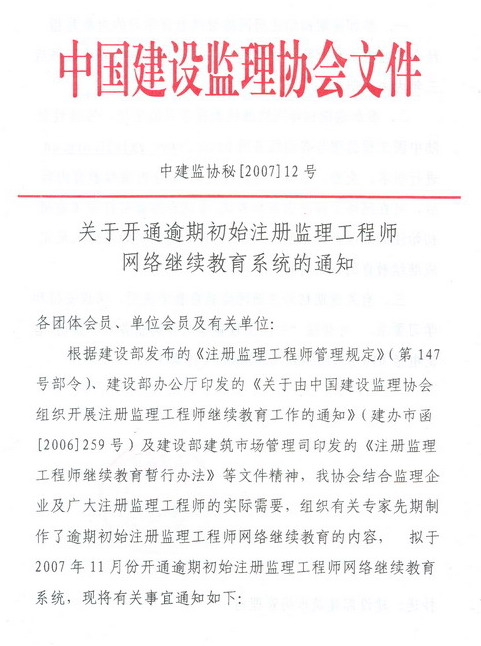 關(guān)于開通逾期初始注冊監(jiān)理工程師網(wǎng)絡繼續(xù)教育系統(tǒng)的通知