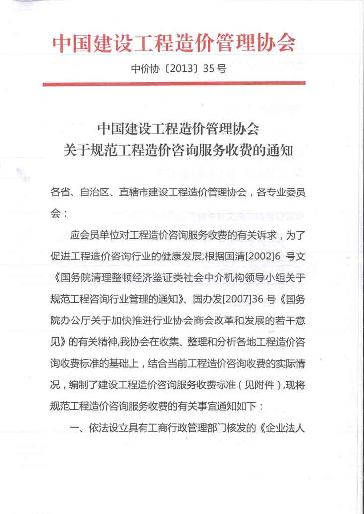 中國建設(shè)工程造價(jià)管理協(xié)會(huì)關(guān)于規(guī)范工程造價(jià)咨詢服務(wù)收費(fèi)的通知
